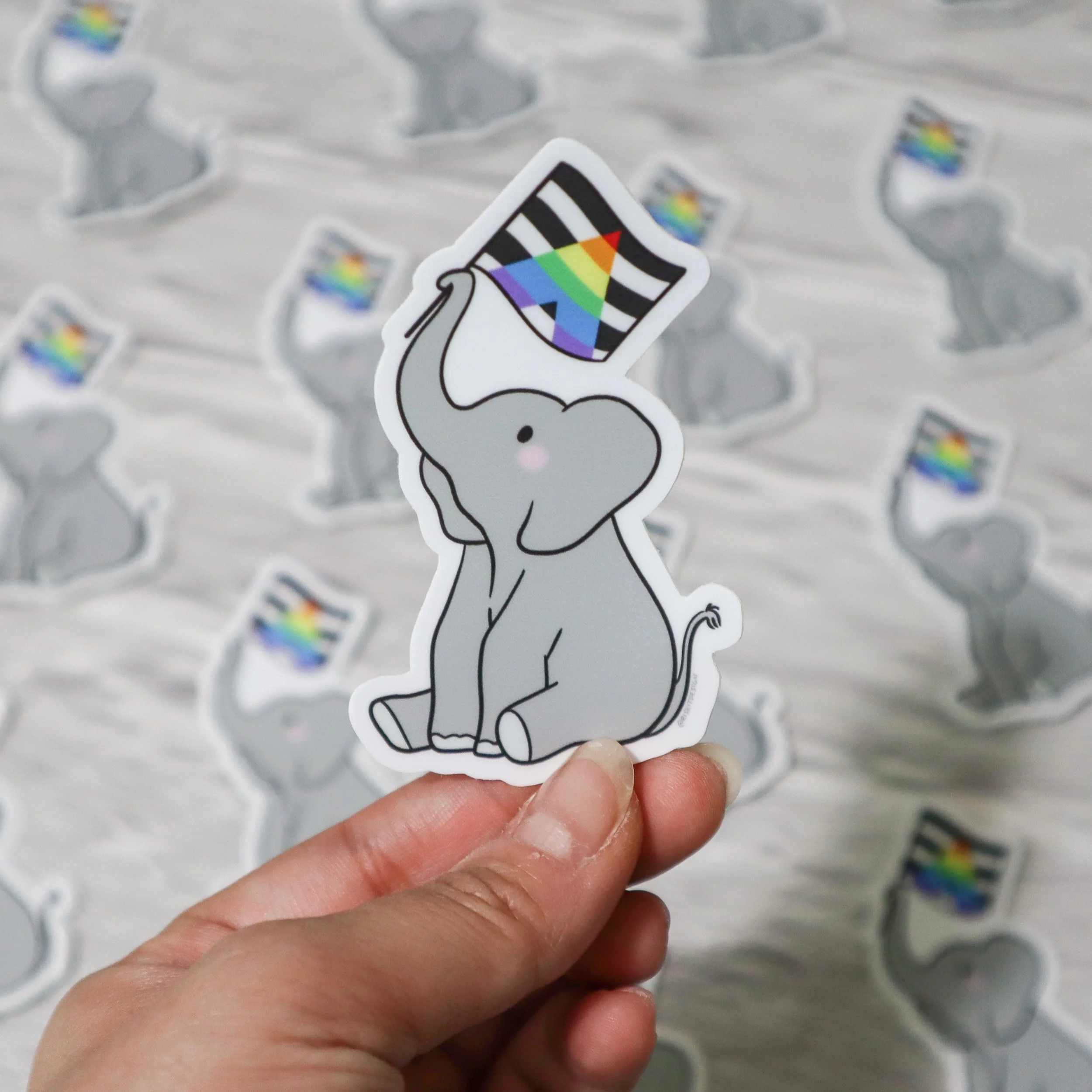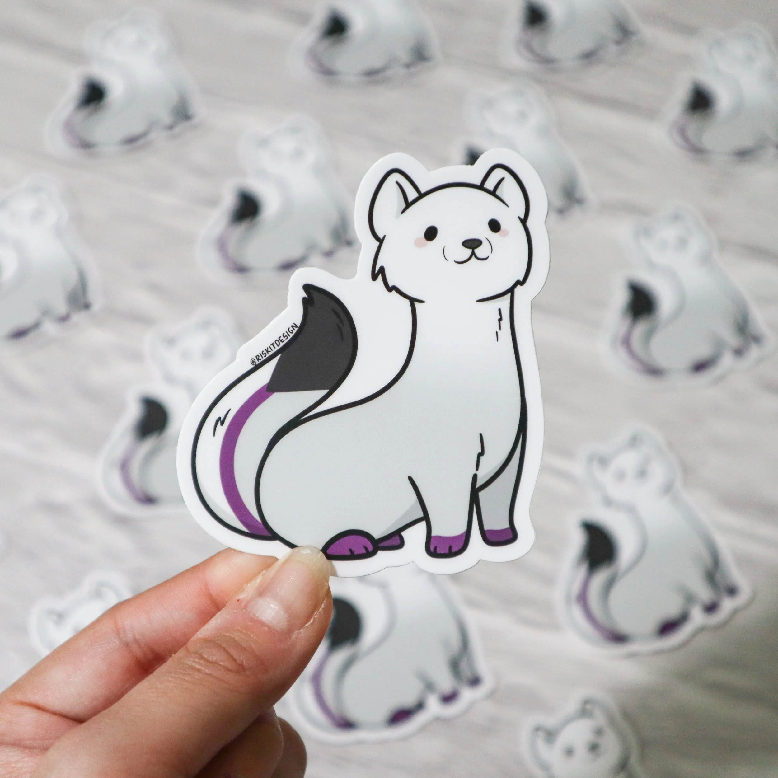 Sticker is made of weatherproof vinyl and is roughly 2.5 × 2.5” in size.